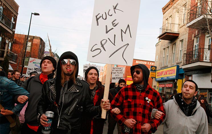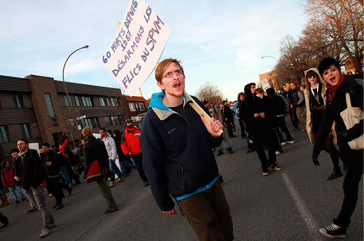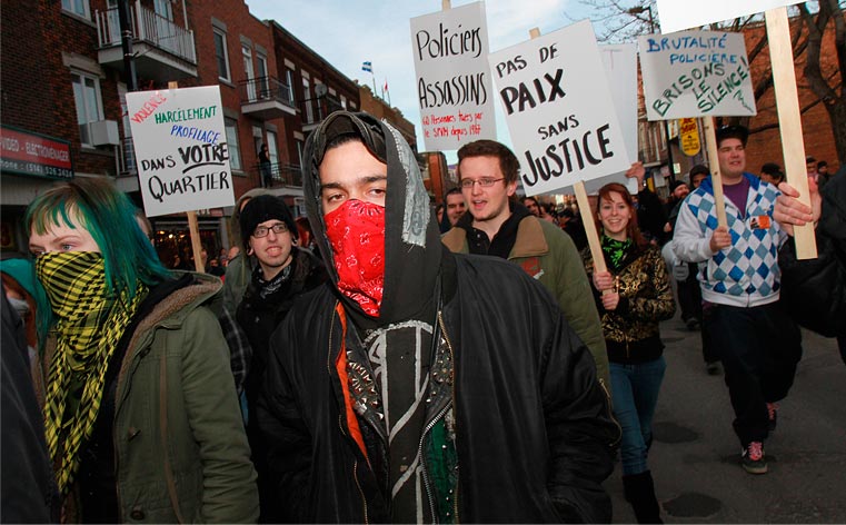 CHAQUE ANNÉE, la marche contre la brutalité policière tourne au saccage. Boîtes aux lettres, feux d’artifice, roches et autres projectiles sont lancés en direction de l’escouade antiémeute en guise de provocation.