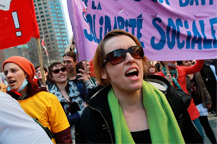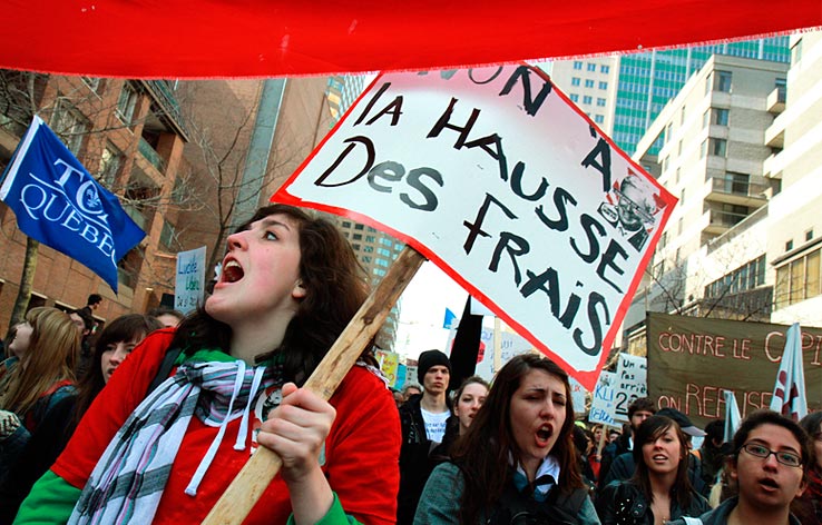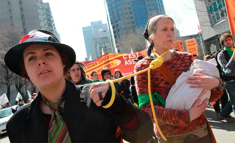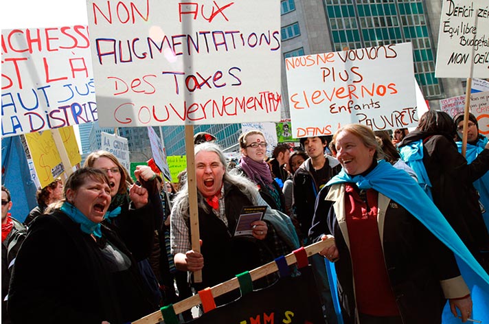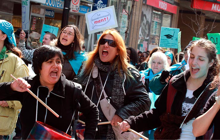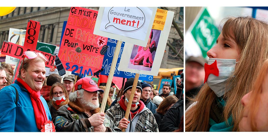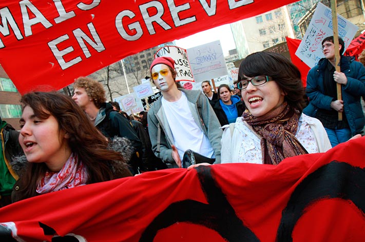 Plusieurs groupes opposés à la tarification et à la privatisation des services publics ont manifesté ce jeudi pour revendiquer l’accès à des services publics universels et de qualité et pour s’opposer aux orientations actuelles du gouvernement Charest qui prévoit une augmentation des tarifs d’électricité, des coupures dans les services publics, une augmentation des frais de scolarité ainsi que l’introduction d’un ticket modérateur en santé.