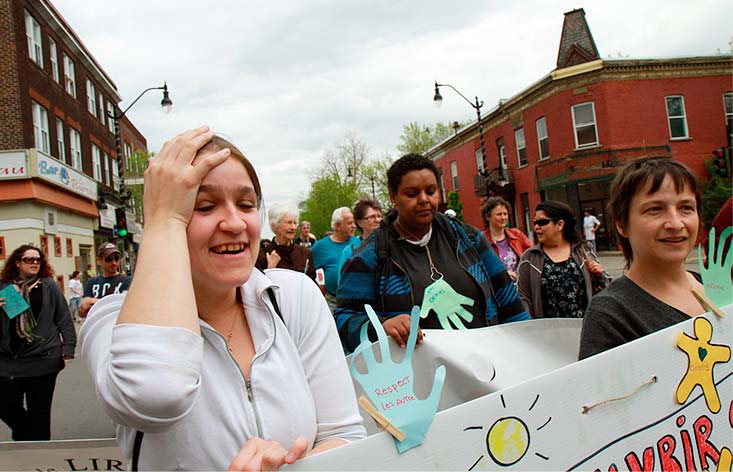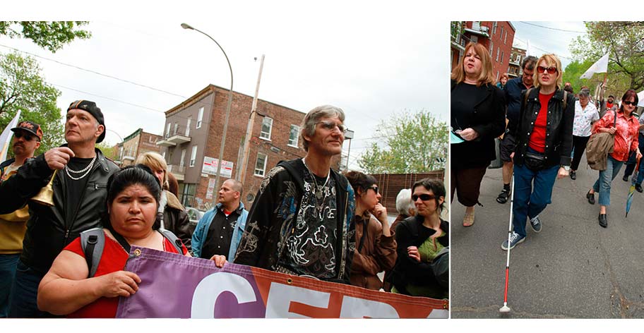 Le Front commun des personnes assistées sociales du Québec s’est rassemblé dans les rues du quartier Hochelaga-Maisonneuve pour souligner la Semaine de la dignité des personnes assistées sociales. Sous la bannière «Les catégories, c’est fini; s’appauvrir ça suffit!», les marcheurs ont exigé la fin des systèmes qui créent l’exclusion et la pauvreté.