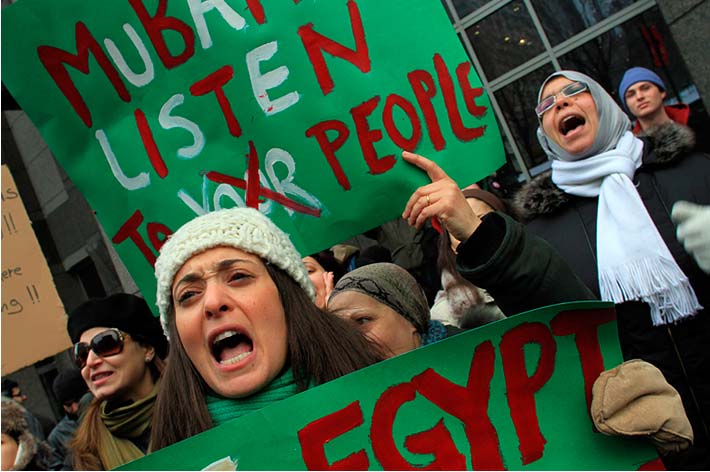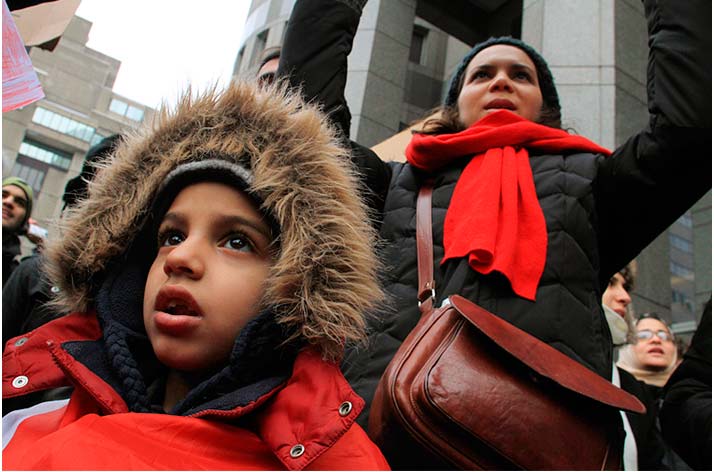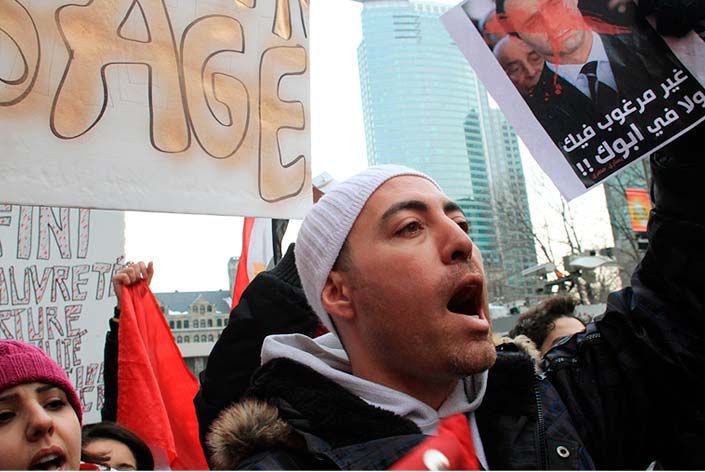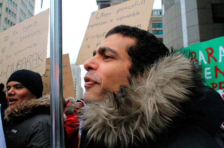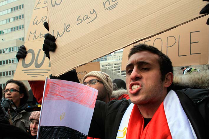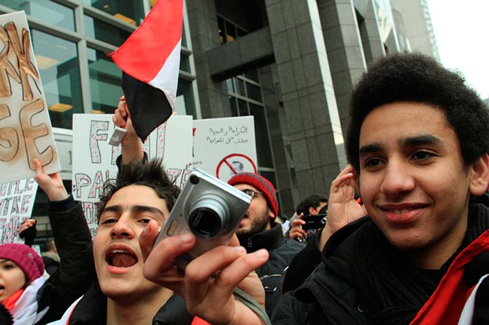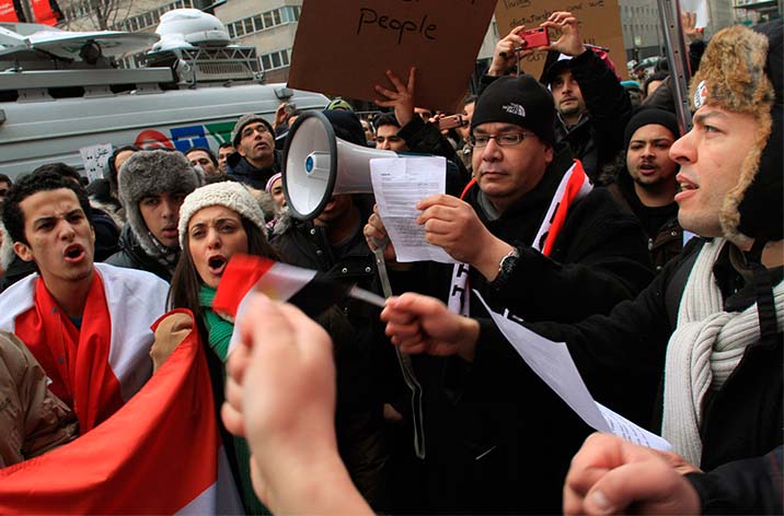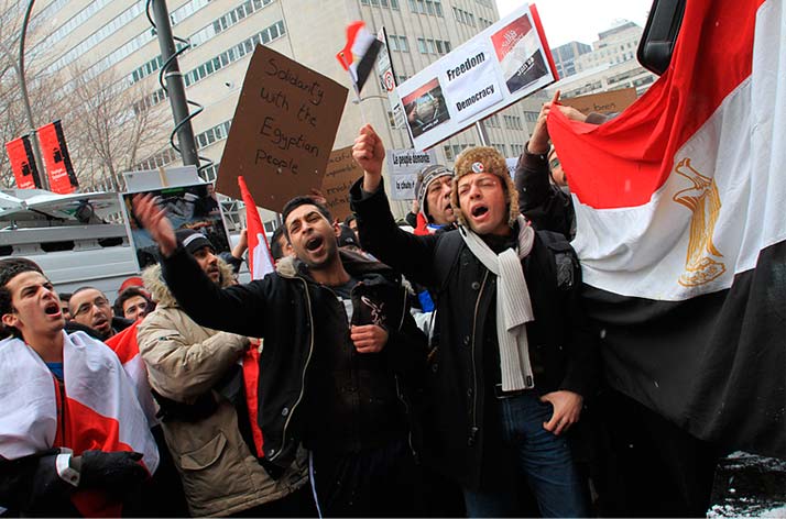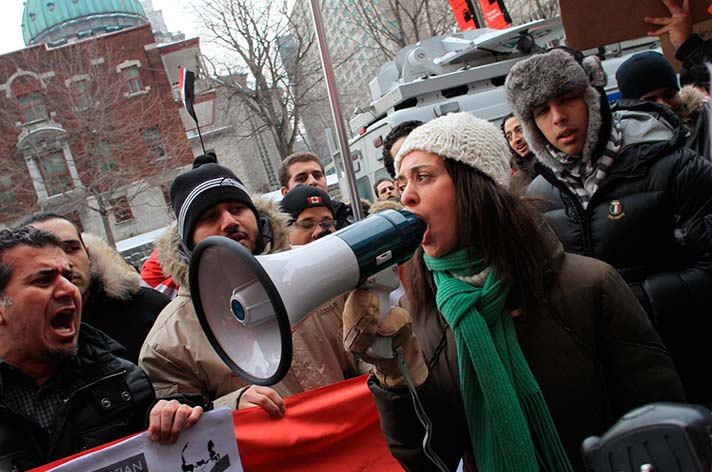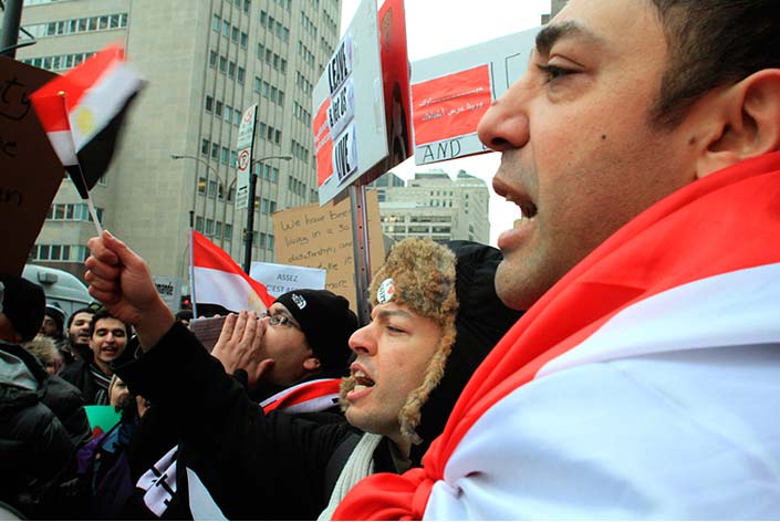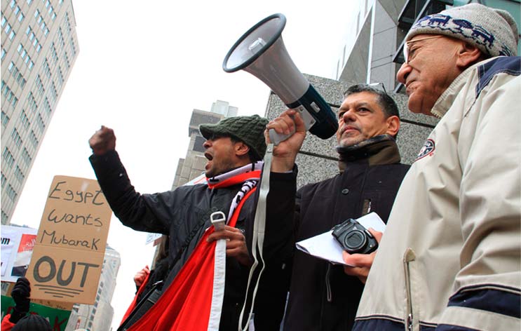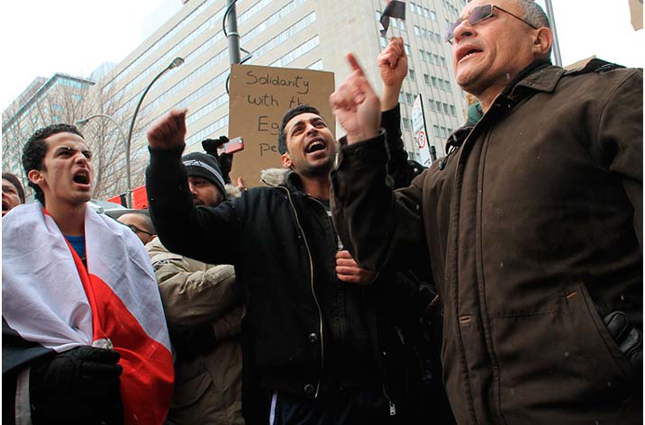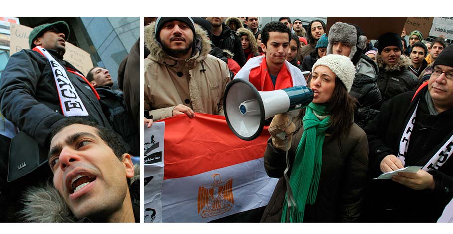 Réunis devant le consulat égyptien, quelques centaines de militants ont clamé haut et fort leur soutien au peuple égyptien qui manifeste depuis plusieurs jours pour que le président Moubarak, en poste depuis 30 ans, «dégage»!