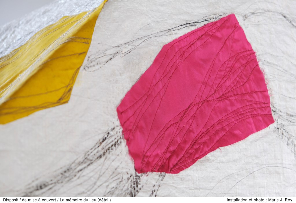 > images 9 à 13 (La mémoire du lieu) : vinyle, tissu imperméable, aluminium, moustiquaire et crayon feutre