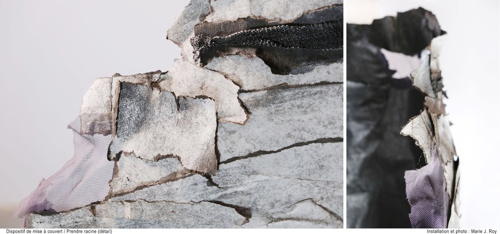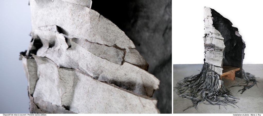 Installés en galerie, les Dispositifs de mise à couvert inviteront le public à les investir. Le projet a pour but de fabriquer une expérience sensorielle visant à se rapprocher de la nature, tout en réfléchissant sur des enjeux sociaux bien réels.