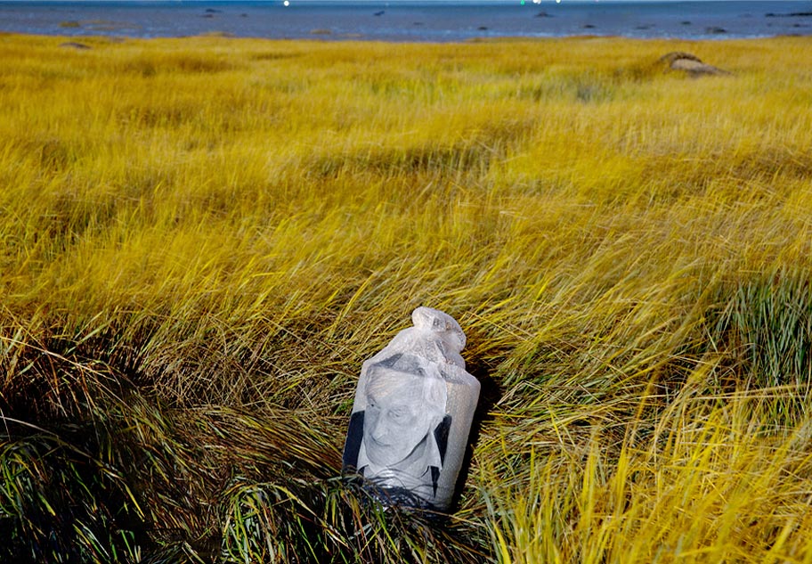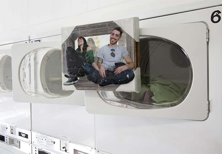 Élaboré à partir de mises en scène et de techniques de transfert d’images, En transit est composé d’une série de dix photographies sur lesquelles se retrouvent ces portraits apposés, tantôt sur des objets de mon quotidien, d’autres fois sur des matériaux servant à protéger mes biens lors de déplacements. Des objets que je cherche à sauvegarder, telle la mémoire de ces gens rencontrés sur ma route.