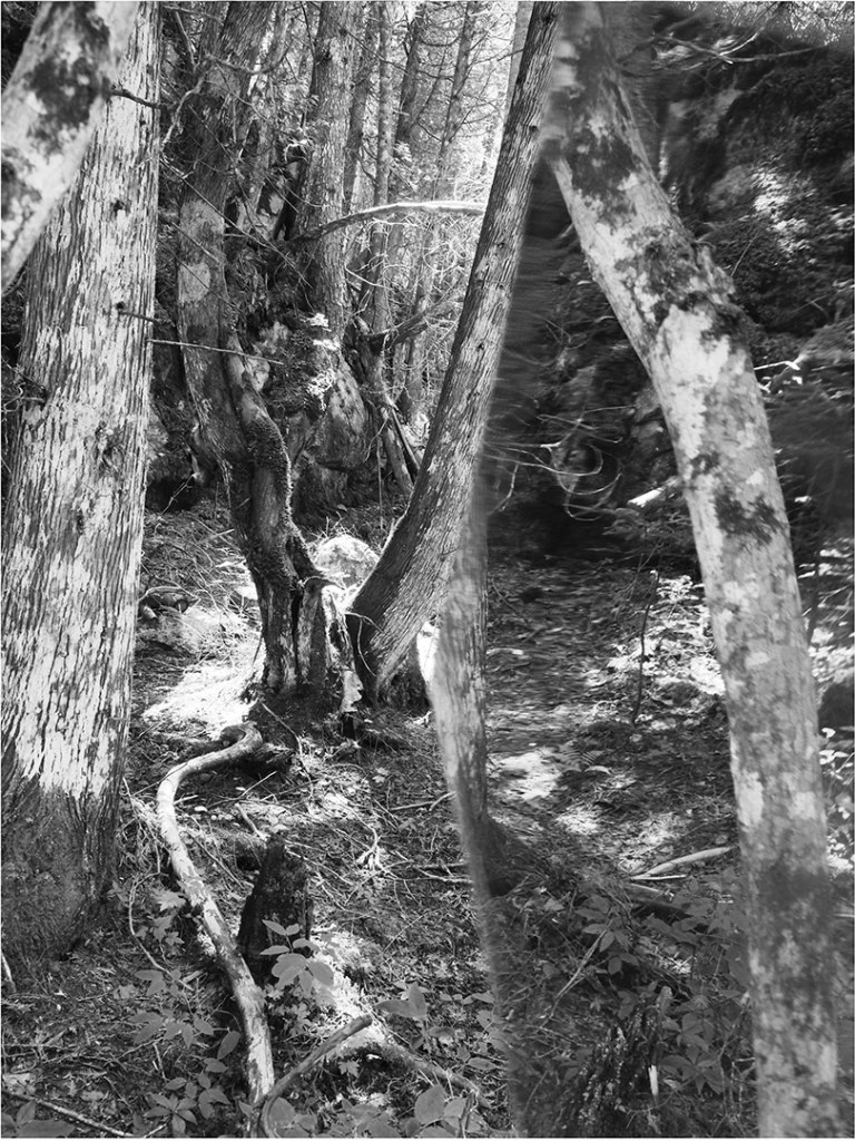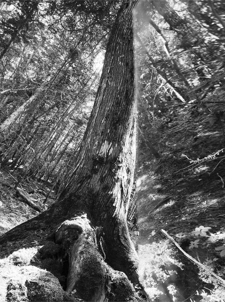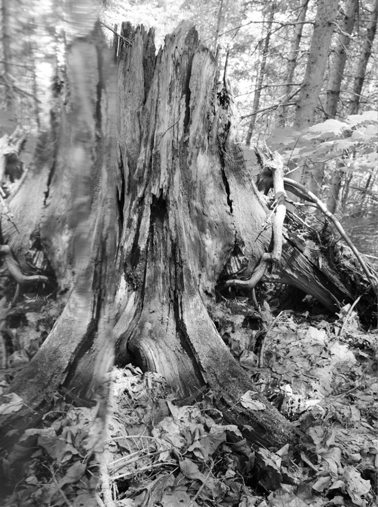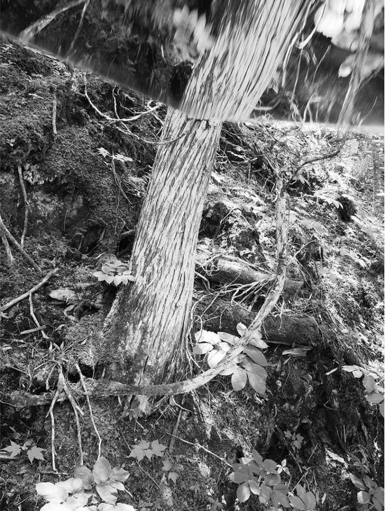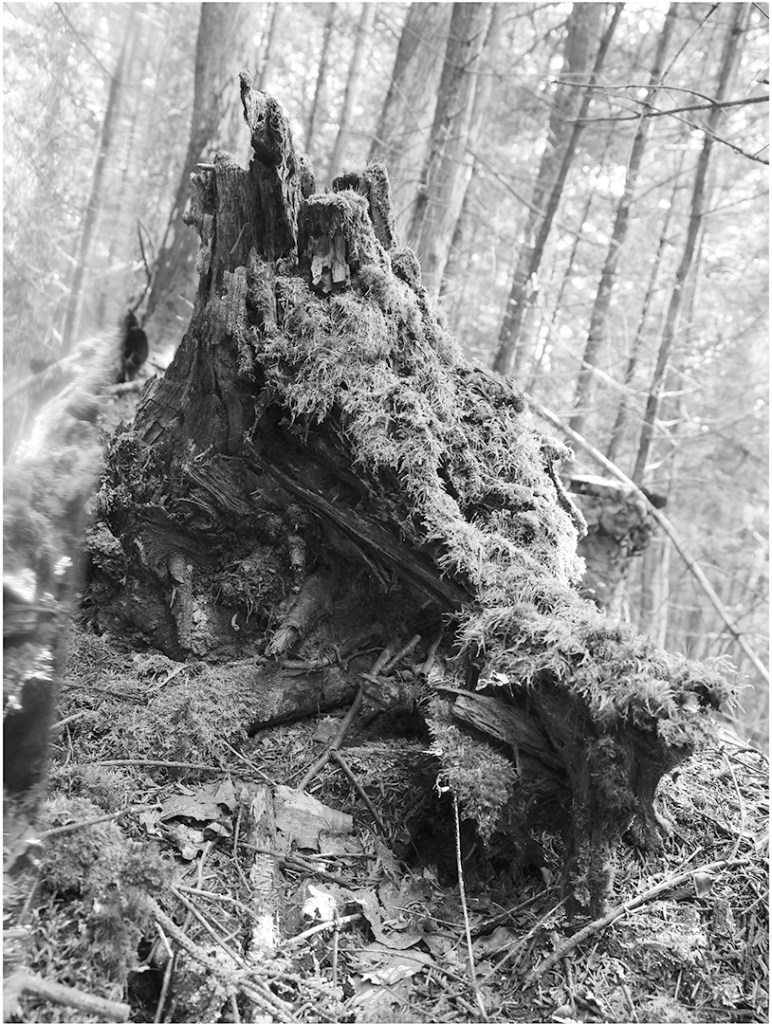 Série de photographies en noir et blanc, accompagnées d’extraits d’entrevues de gens pour qui la forêt joue un rôle important dans leur vie.