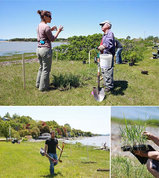 «Le rosier a été introduit et est envahissant, mais il fait un travail phénoménal de stabilisation», dira Jean-Étienne. La plantation de la Spartine étalée et de l’Élyme des sables est une technique peu couteuse si on compare avec l’enrochement.