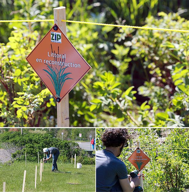 15h30, il reste encore quelques cassettes à vider de leur contenu. Toute l’équipe redouble de courage et entame un sprint final! Lorsque les plages sont larges et bien végétalisées, elles subissent beaucoup moins de dégâts lors de tempêtes, car elles ont la capacité de réduire la force des vagues et ainsi, diminuer les impacts sur la côte. Malheureusement, le plus grand ennemi de ces deux végétaux n’est pas le fleuve, mais bien les randonneurs! Philippe s’empresse de baliser les zones plantées en y installant des cordons et des affichettes à l’éffigie du Comité ZIP.
