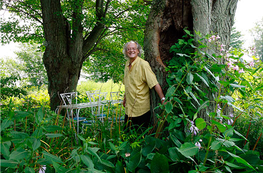 Heureux du travail accompli, nous nous arrêtons pour caller deux verres d’eau glacée bien mérités. «J’aimerais bien que tu photographies l’arbre derrière la maison. Tu sais, toutes les fleurs dans le jardin et les arbres (surtout les bouleaux) autour de la maison, c’est ça mon inspiration!»