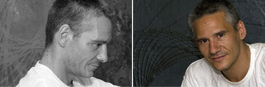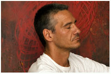 Stephan Lemay a un parcours aux multiples champs d’intérêt. La musique fait parti de sa vie autant que les arts martiaux qui l’ont amené à séjourner au Brésil pour y approfondir la technique de la capoeira. Tout ça est présent dans son travail pictural fortement influencé par les rythmes et le mouvement. La spirale se retrouve sur toutes ses pièces, le plus souvent fragmentée. Stephan m’avouera qu’il puise son inspiration dans les cycles de la vie qui se répète à l’infini, qu’on en soit conscient ou non.